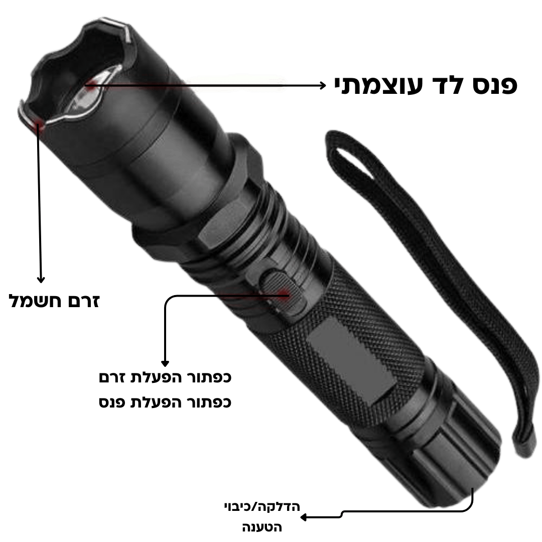 הפנס חזק במיוחד ועובד כמו פנס רגיל בתוספת לשוקר.